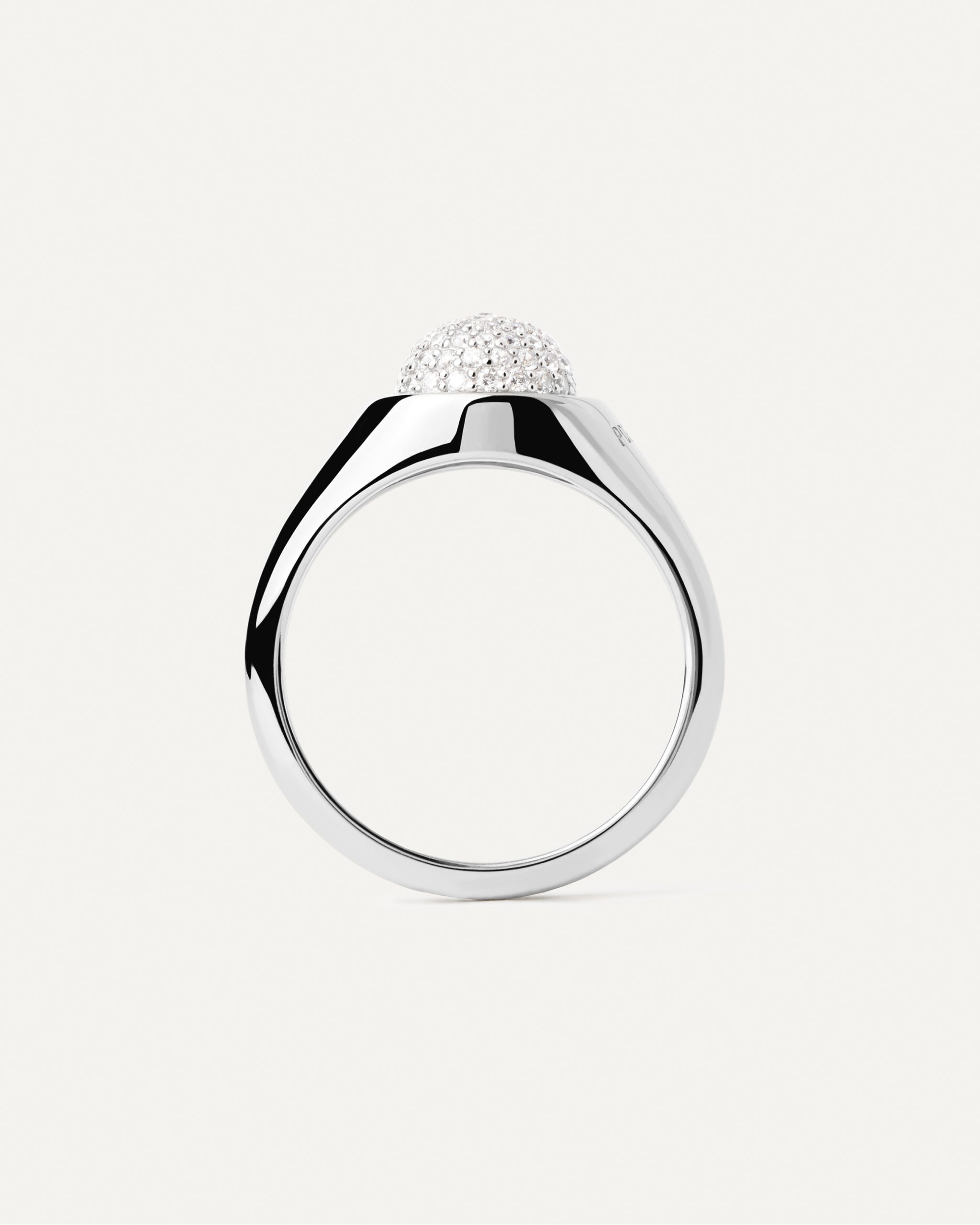 Sterling silver half sphere ring topped with an oval pavé zirconia