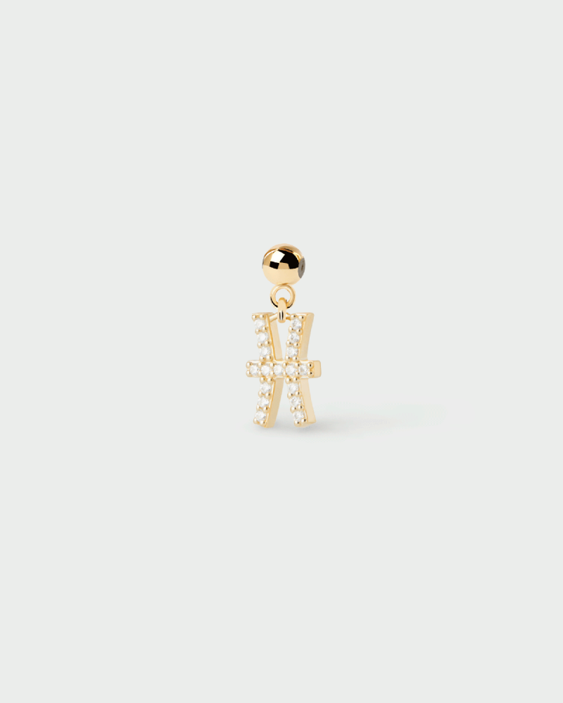 Handcrafted with 18K gold-plated silver and adorned with white zirconia. Aries charm, Taurus charm, Gemini charm, Cancer charm, Leo charm, Virgo charm, Libra charm, Scorpio charm, Sagittarius charm, Capricorn charm, Aquarius charm, Pisces charm. Zodiac jewelry that captures the essence of the twelve astrological signs.