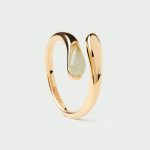 Gold-plated fluid open ring embellished with an orange oval gemstone